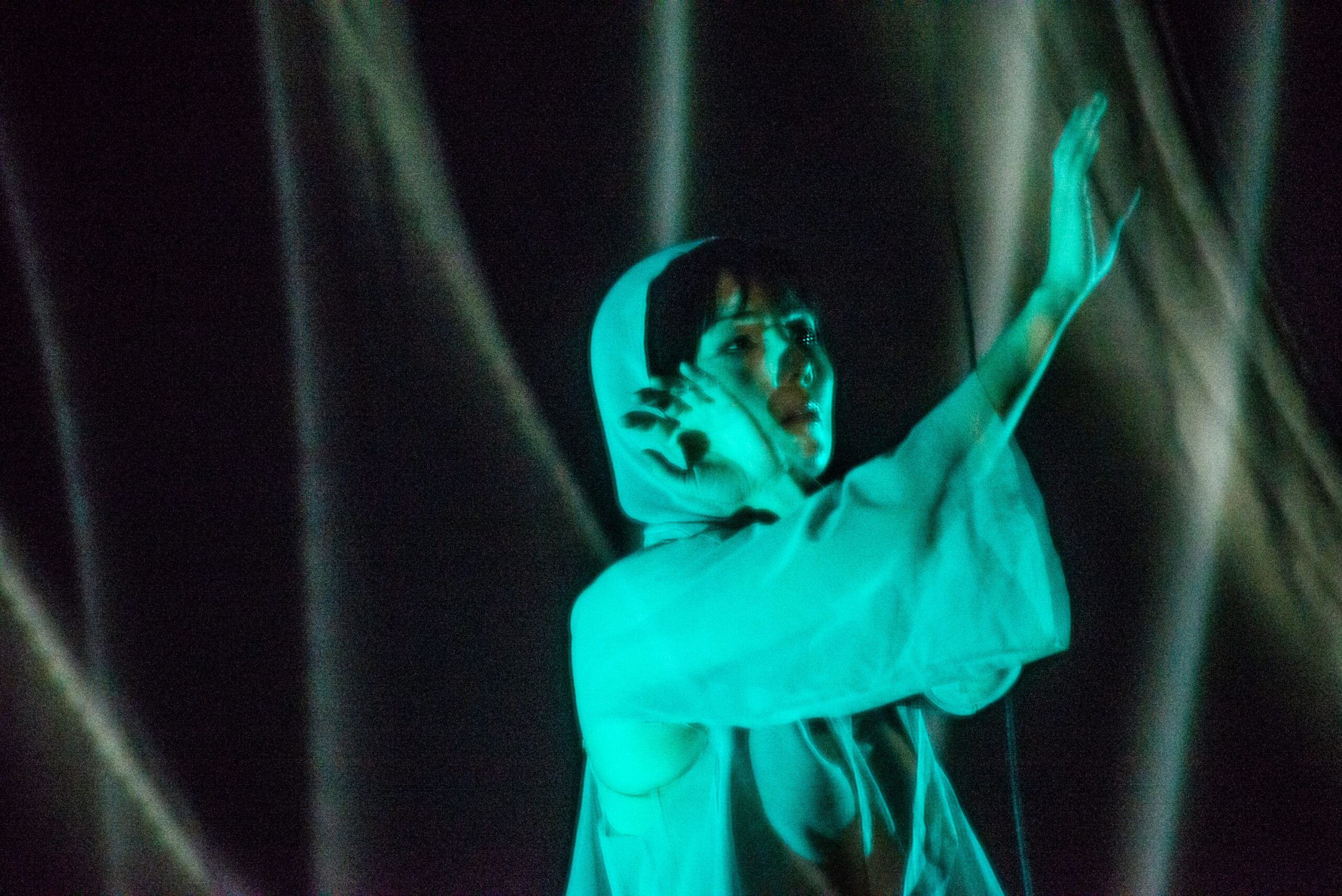 "membrane | 虚実皮膜" is a multidisciplinary collaboration between movement artist Yoko Murakami and audiovisual artist Maria Takeuchi using motion-tracking technology.